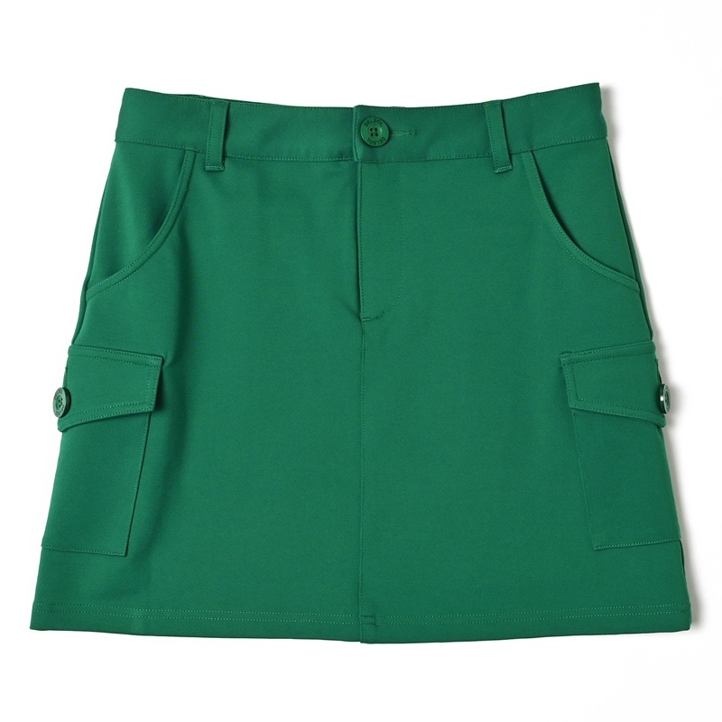 後ろポケット付ストレッチカーゴスカート (丈長め)アンダーパンツ一体型