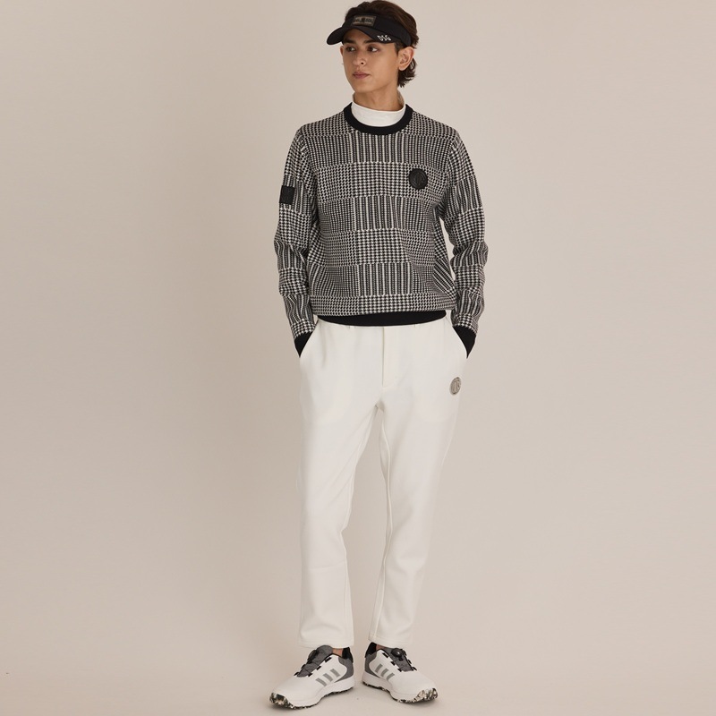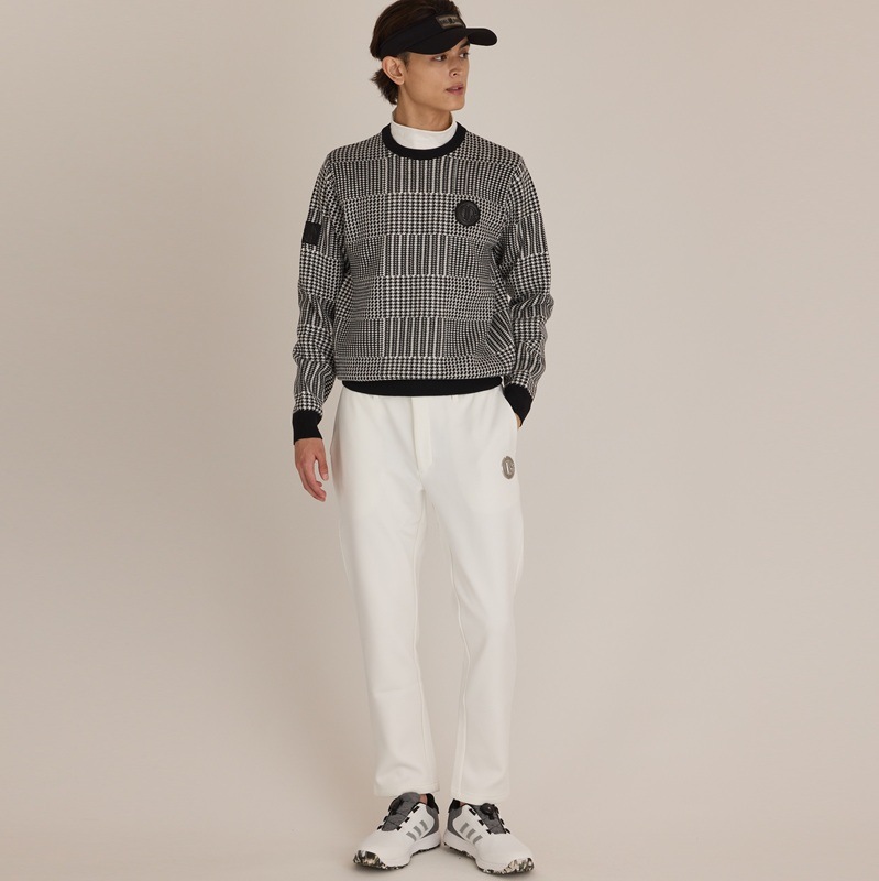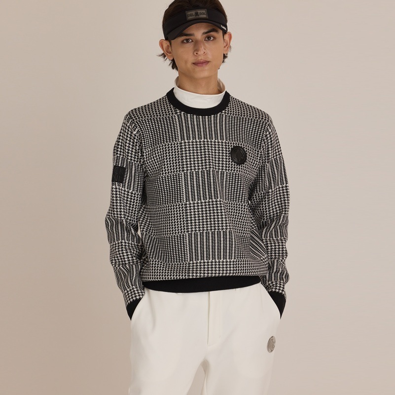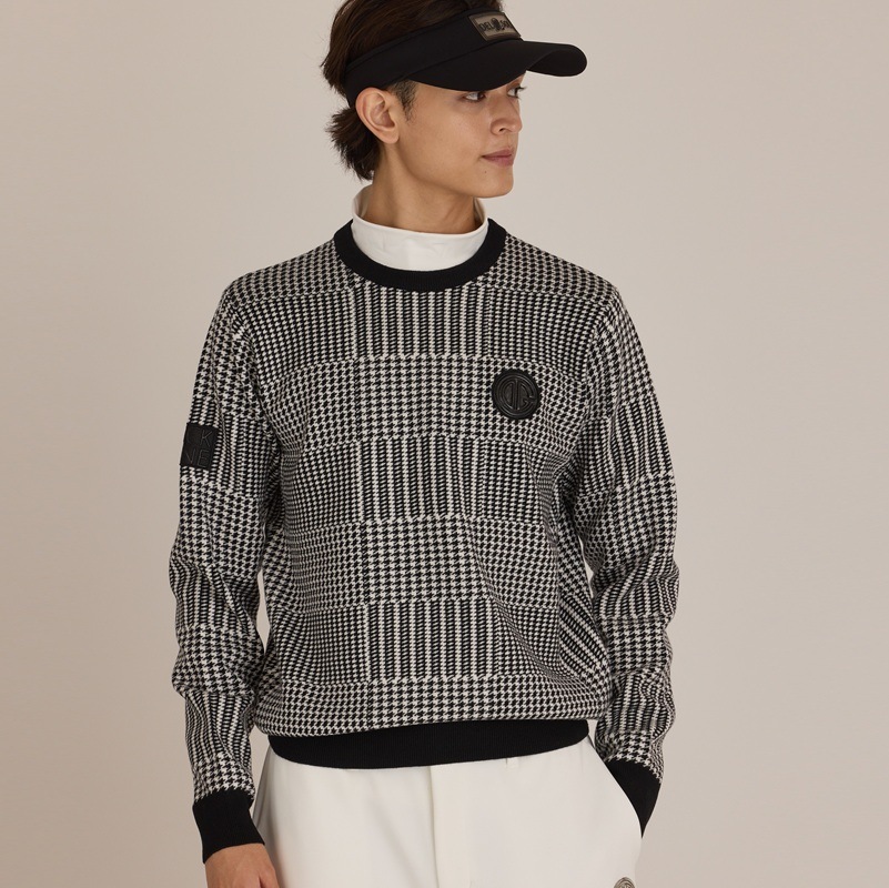 エリ:クルーネック ・上品なデザインのグレンチェック柄なので派手な柄が苦手な方でもコーデに取り入れやすい1着です。 ・同じシルエットで無地デザインの「5037 ハイゲージクルーネックニット」も発売中です。