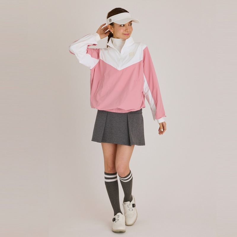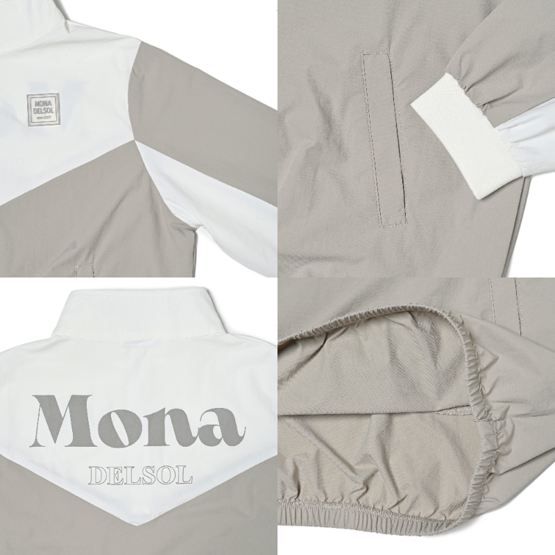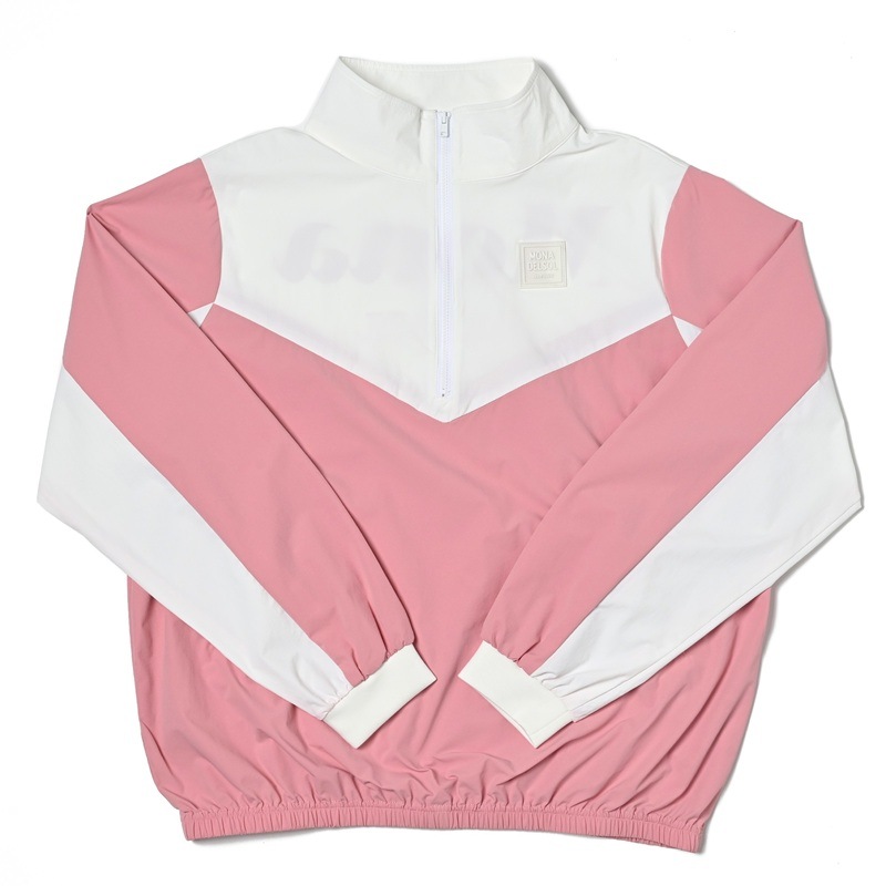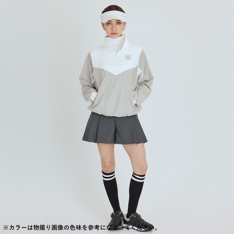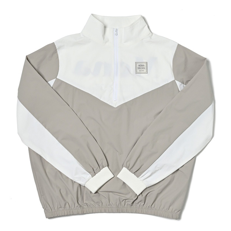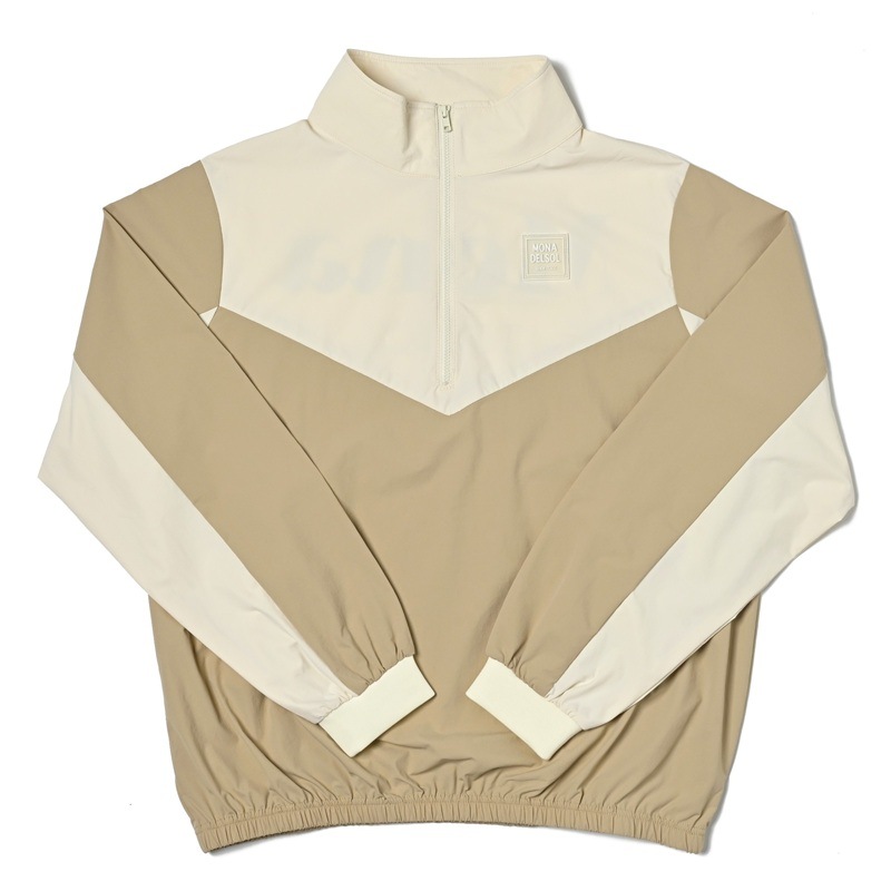 エリ:ハーフジップ 透け感:WHITE生地部分のみややあり ポケット:前身両サイド ・さらっとした軽量生地を使用し、裾が総ゴム仕様の薄手プルオーバー
