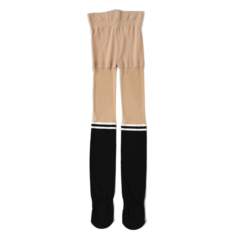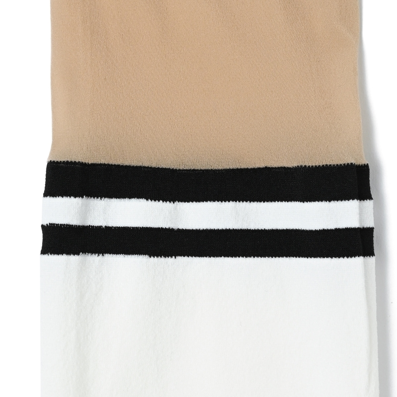 | 詳細 | 肌色の部分は15デニールで、UVカット効果があるストッキングで、ハイソックス部分は、フィット感のあるソックスです。 ほつれ防止糸を採用しているのでひっかけてしまっても穴が広がりません。 足裏には滑り止めがついているので靴の中でずれたりしません。 ニーハイ(別ページ)とハイソックスの2種類あるのでボトムスにあわせて使い分けできます。 重ね履きの煩わしさや、プレー中のずれ落ちが気になる方におすすめです。 |