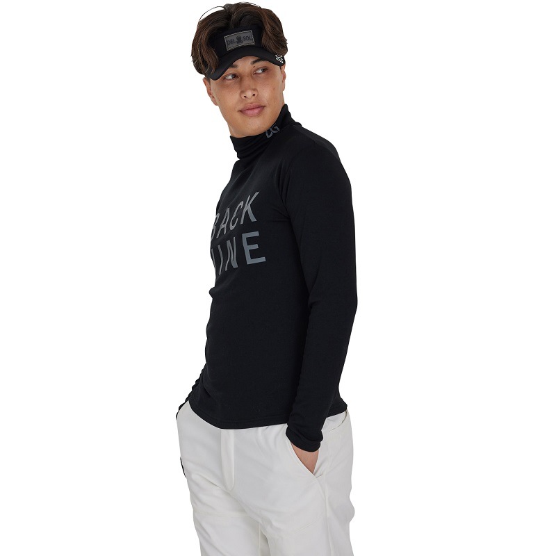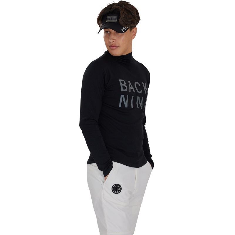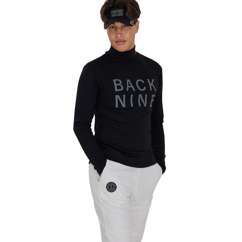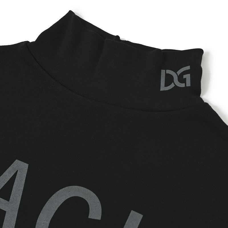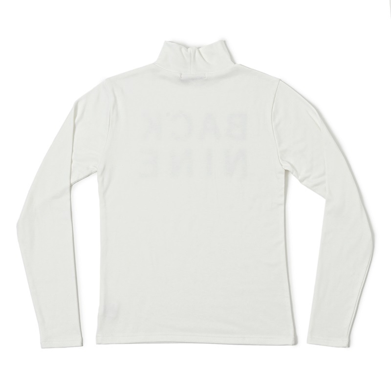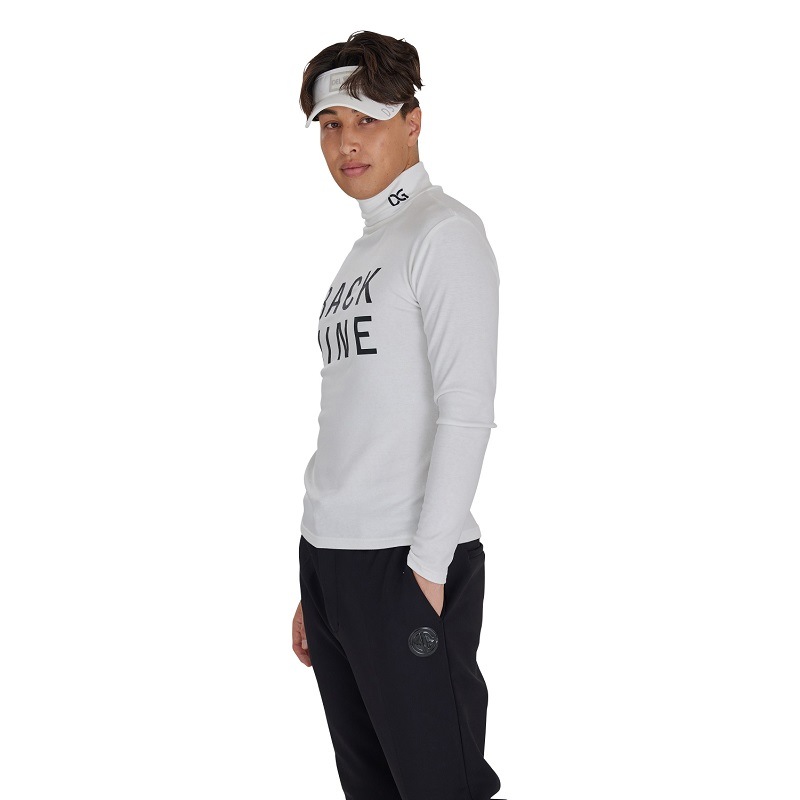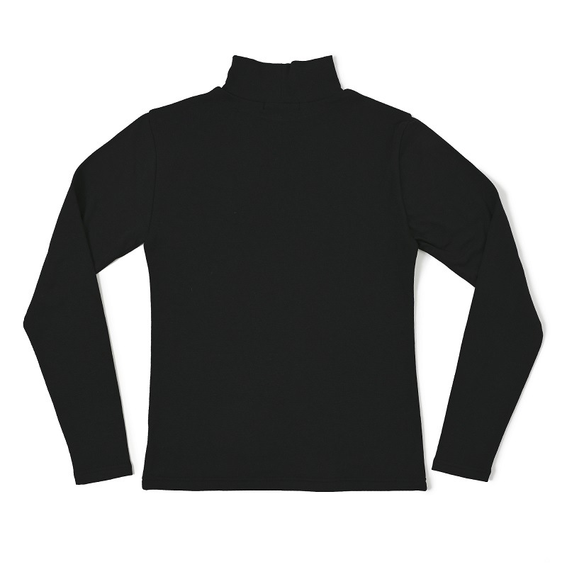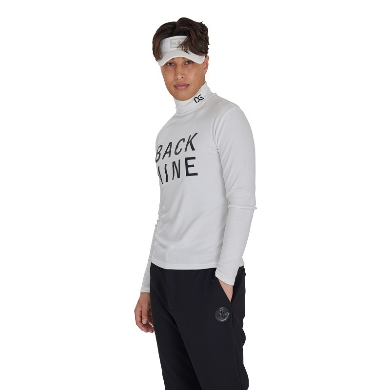 エリ:ハイネック 伸縮性抜群の裏起毛ハイネックインナー。 フロントの大きなロゴプリントがアクセント。