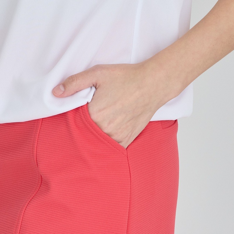 表面に凹凸のあるリップル生地を使用したデザイン性のあるスカート 春夏に最適な、さらりとした生地感と通気性があり、夏のラウンドが快適に グリーンに映える綺麗なカラーが気分もスコアもあげてくれるかも?!