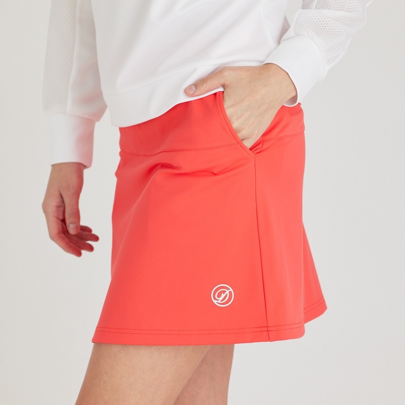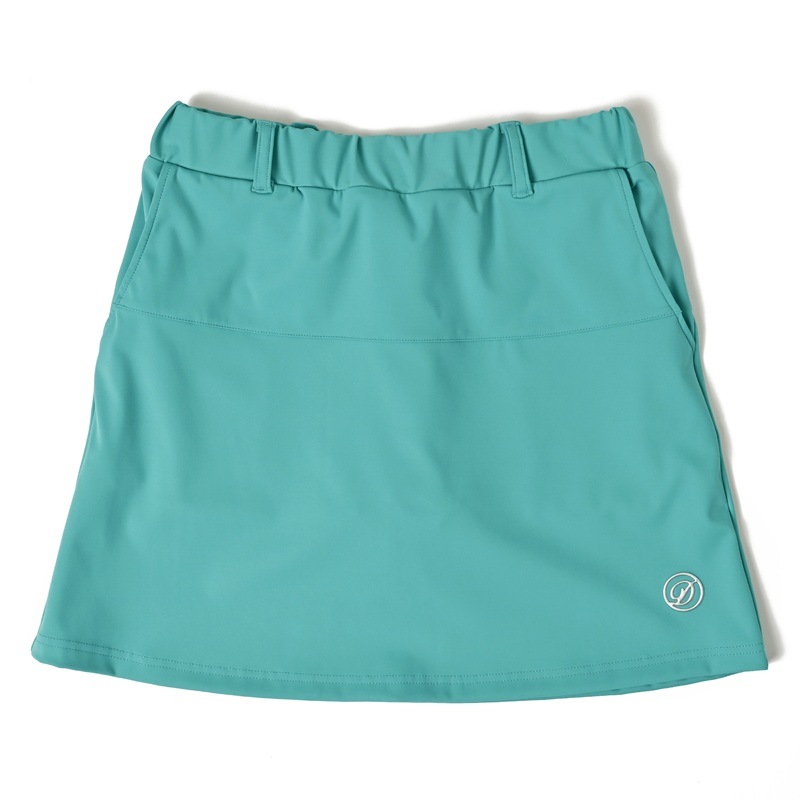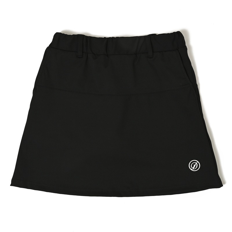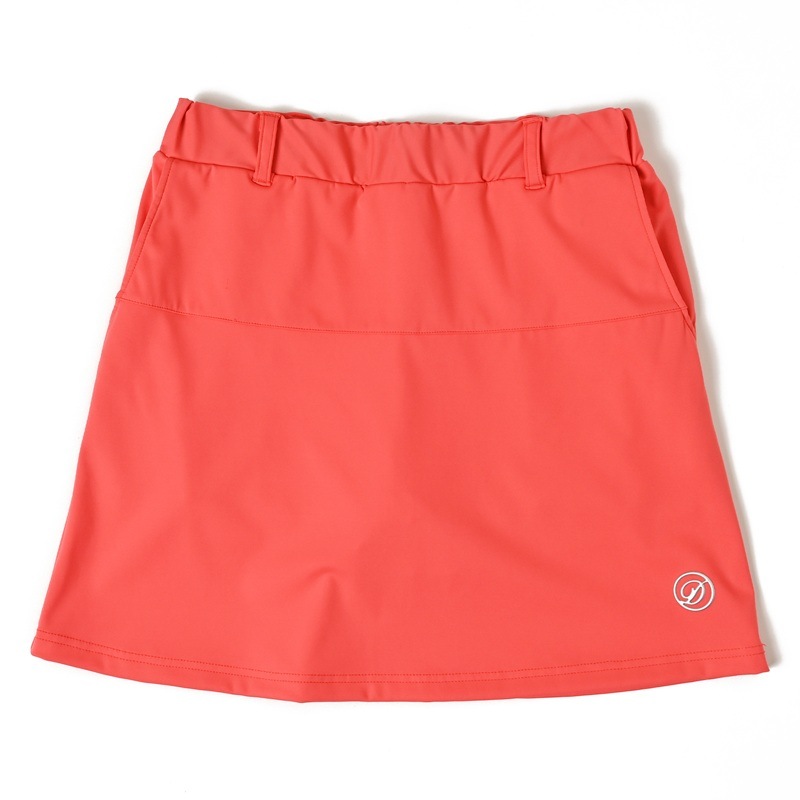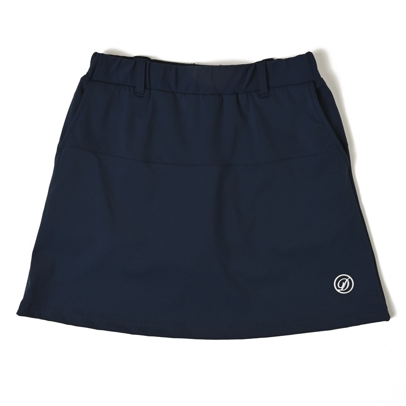 ストレッチが効いている薄くて軽いタッチのスカート。 裾のセミフレアーとワンポイント刺繍が何にでも合わせやすいデザイン