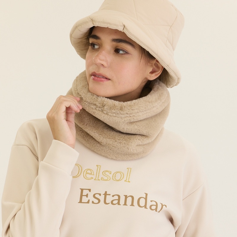 ふわふわと柔らかく滑らかなフェイクファーを使用したスヌード仕立てのネックウォーマー 首元に程よいボリュームをプラスしてくれる防寒アイテム ベーシックなカラー展開で、コーディネイトのアクセントにもGOOD 後ろのアジャスターでサイズ調節をして首元にフィットさせれば、保温性・防寒性もアップします。